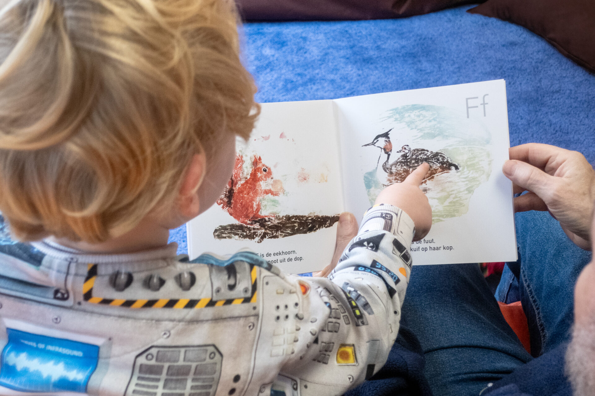 Al was voor hen het boek ‘A is een aapje’ van Rie Cramer een inspiratie in opzet en rijm, de keuze viel op dieren uit de Nederlandse natuur. Het werd geen olifant bij de O of panter bij de P, maar oorworm en pimpelmees. Hoe leuk is het om voor of mèt je kind te lezen over een slakkenspoor en dat even later buiten samen zelf te ont- dekken.