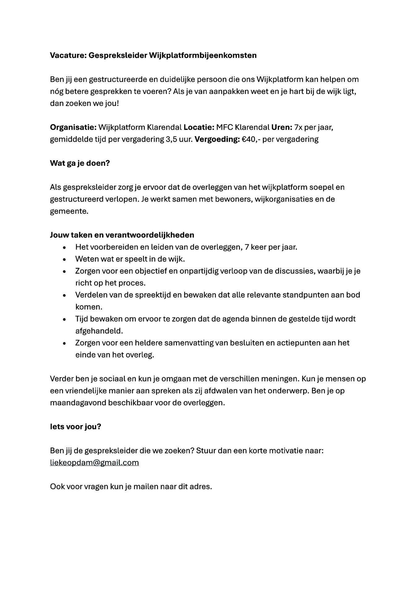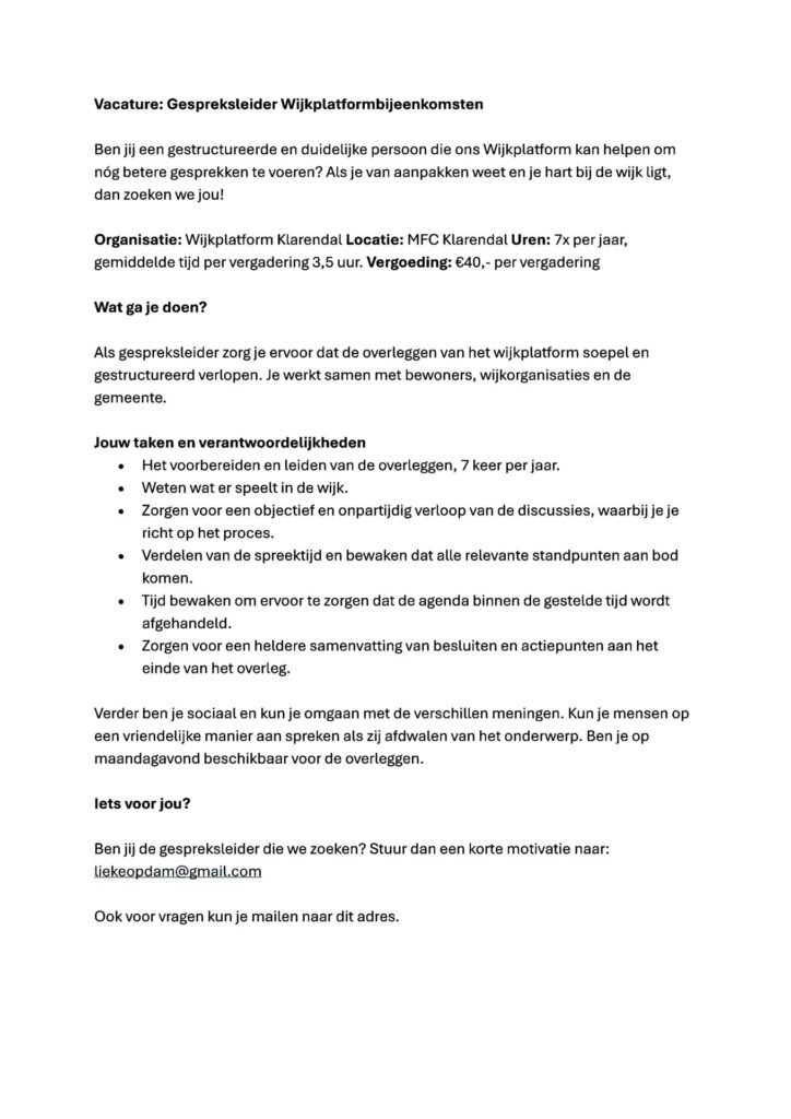 Home » Vacature Gespreksleider Wijkplatform